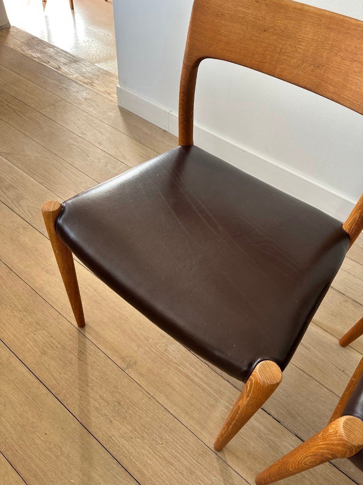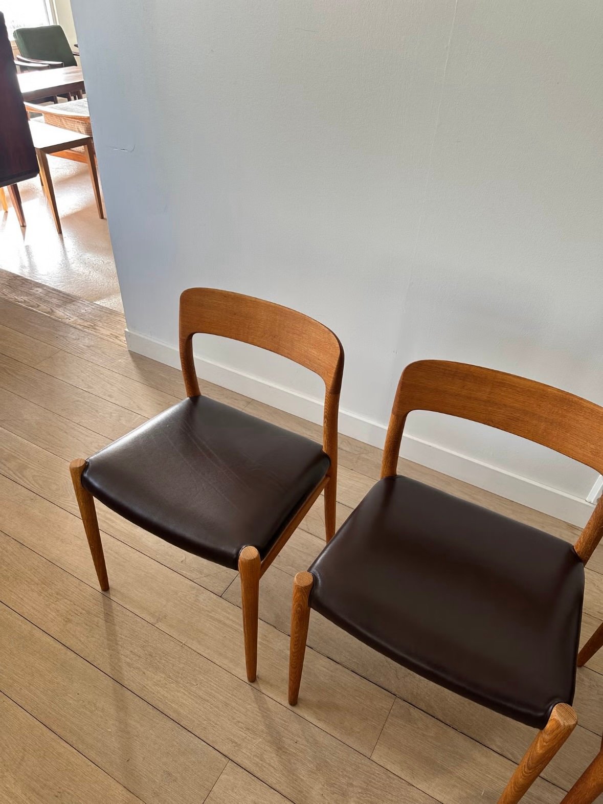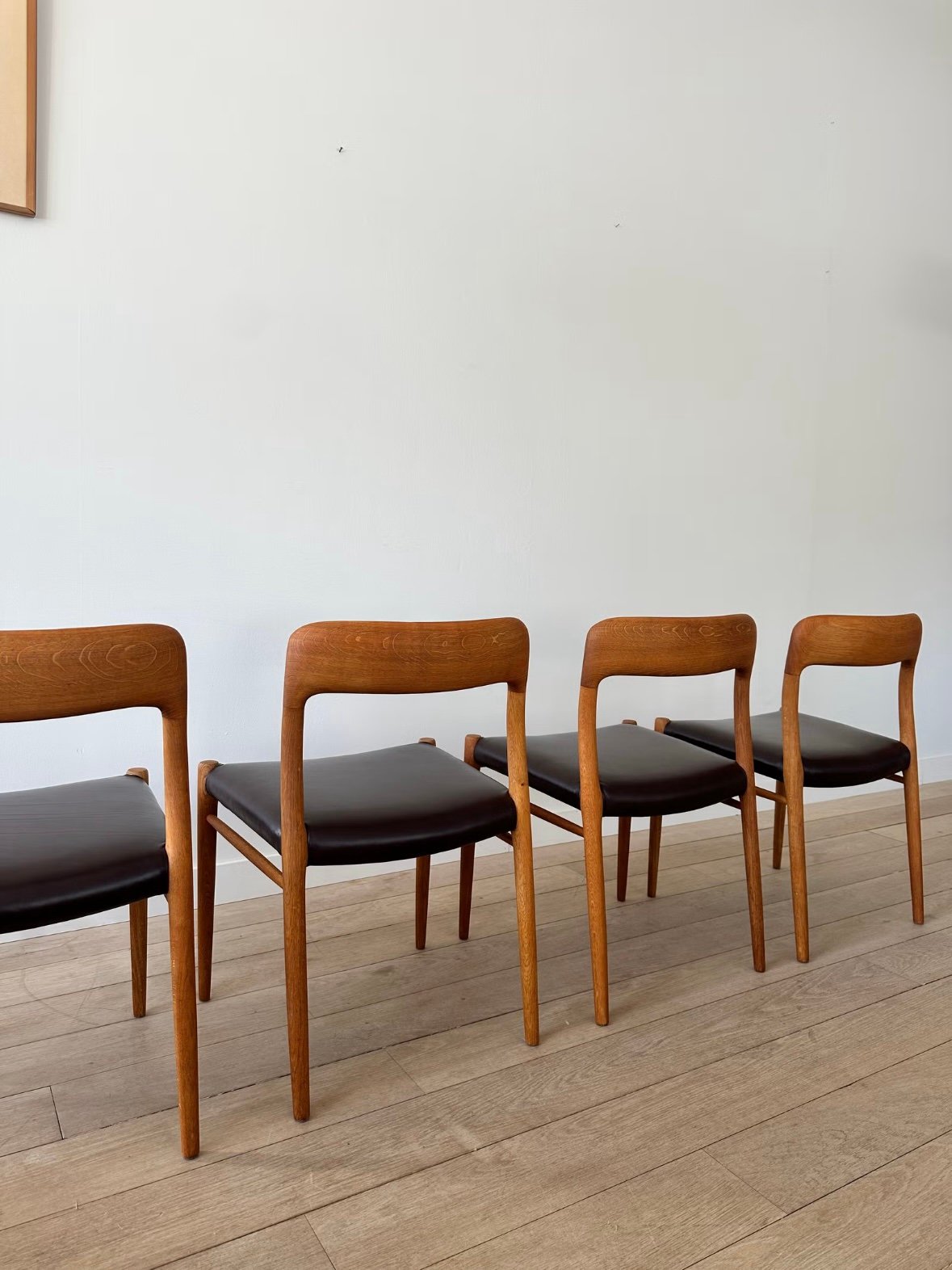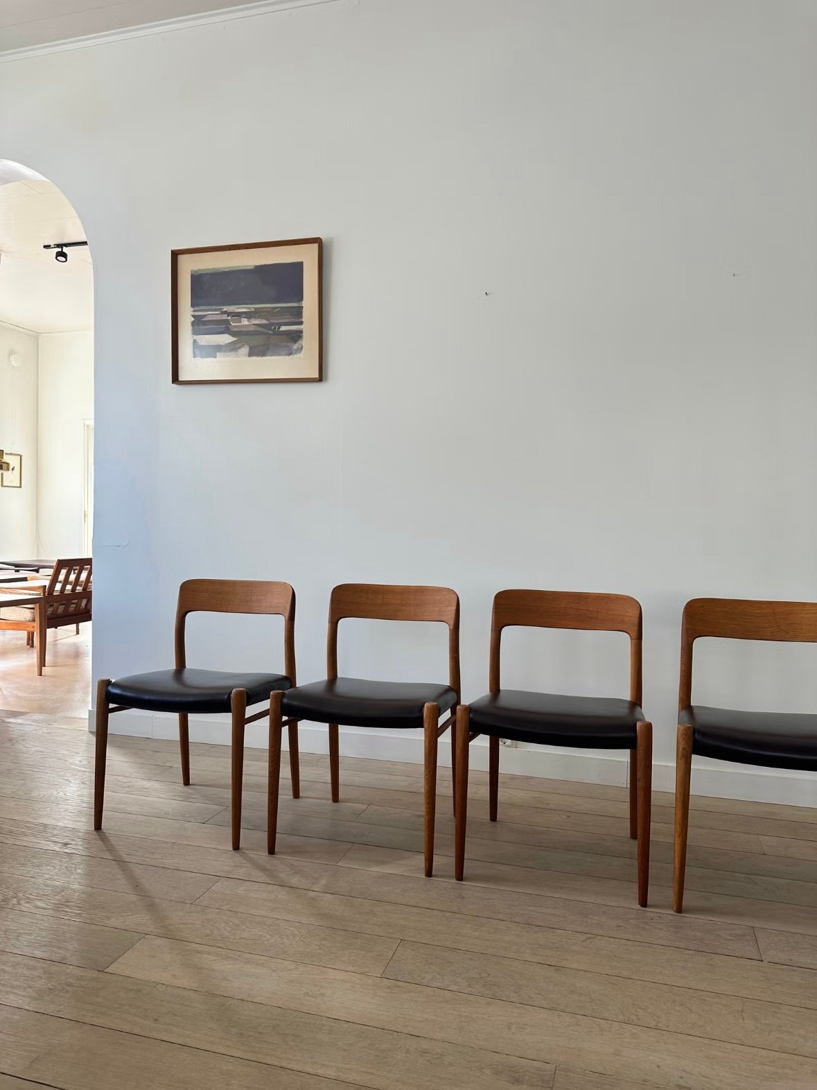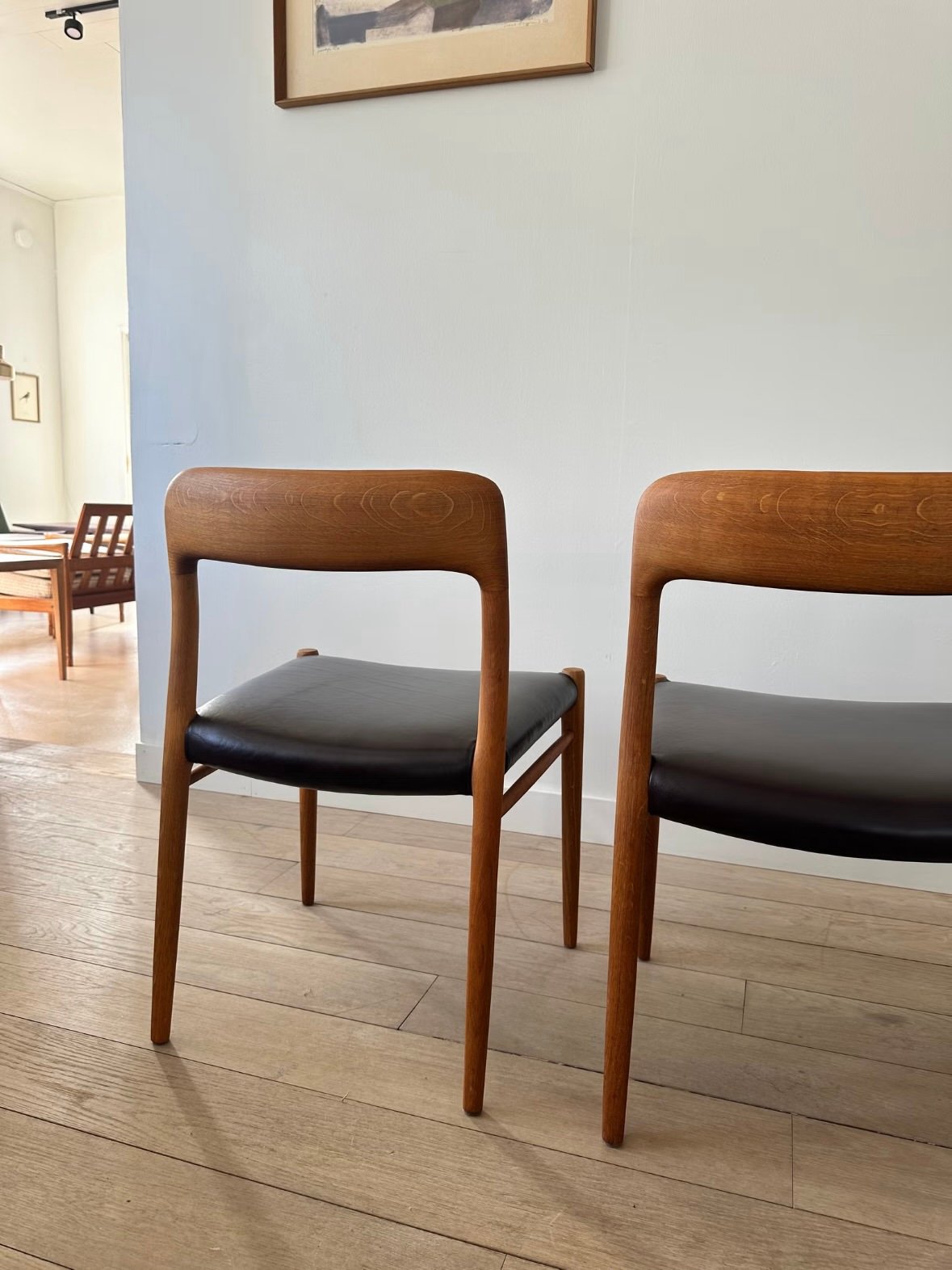 The Model 75 is one of Niels Otto Møller’s most beloved designs, known for its elegantly curved backrest and excellent craftsmanship. Each chair is a testament to the quality and timeless aesthetics of Danish design.