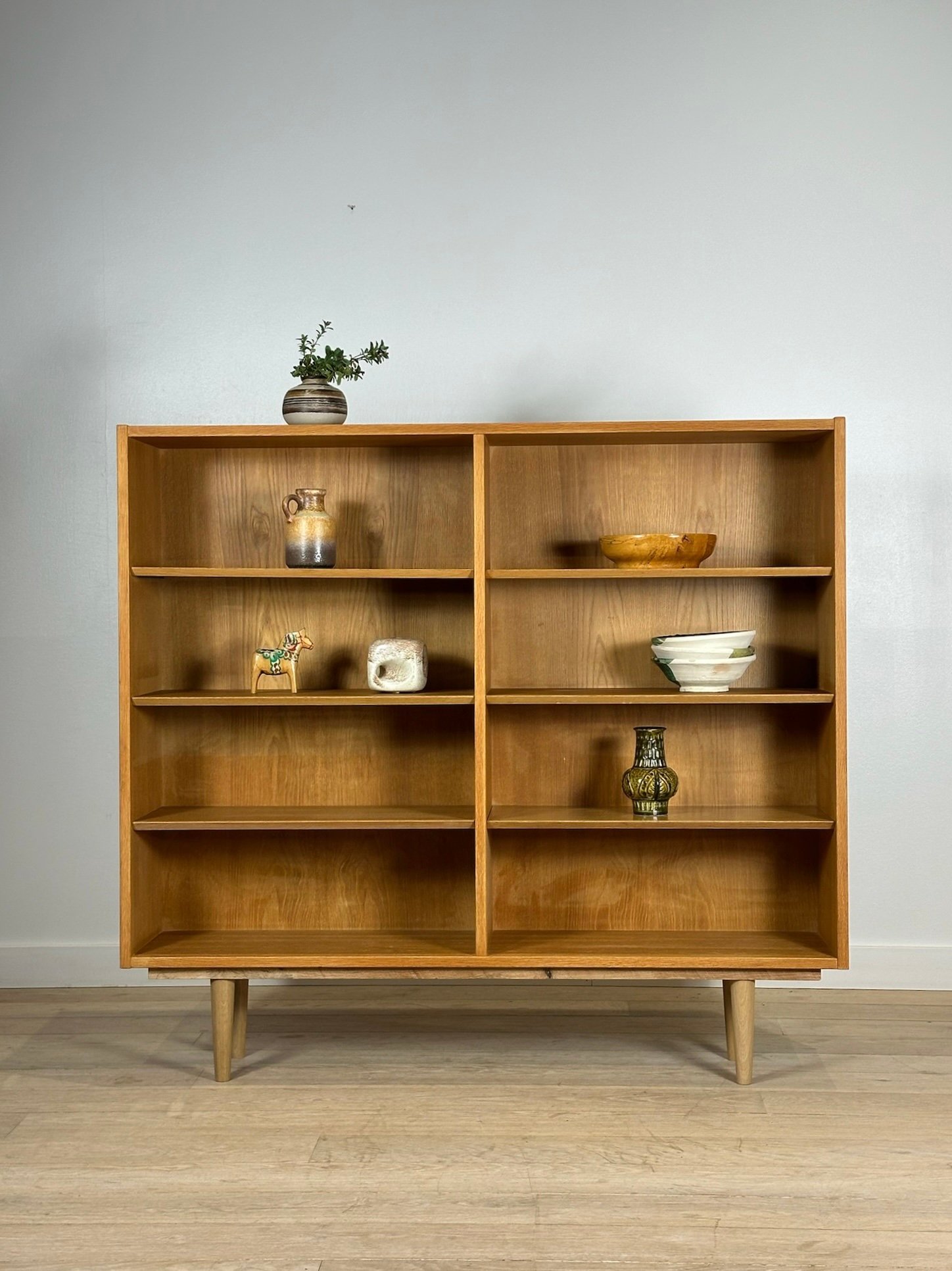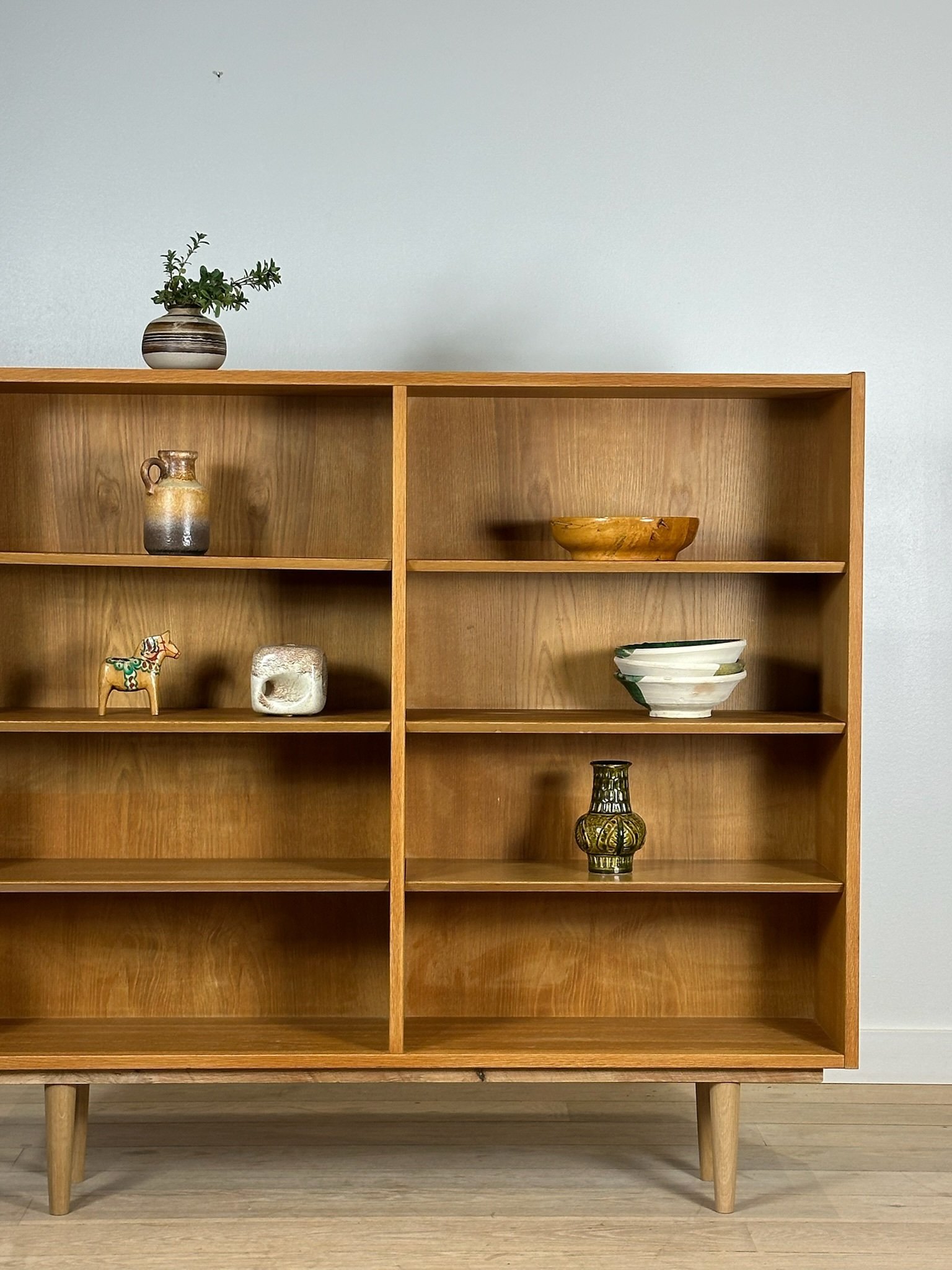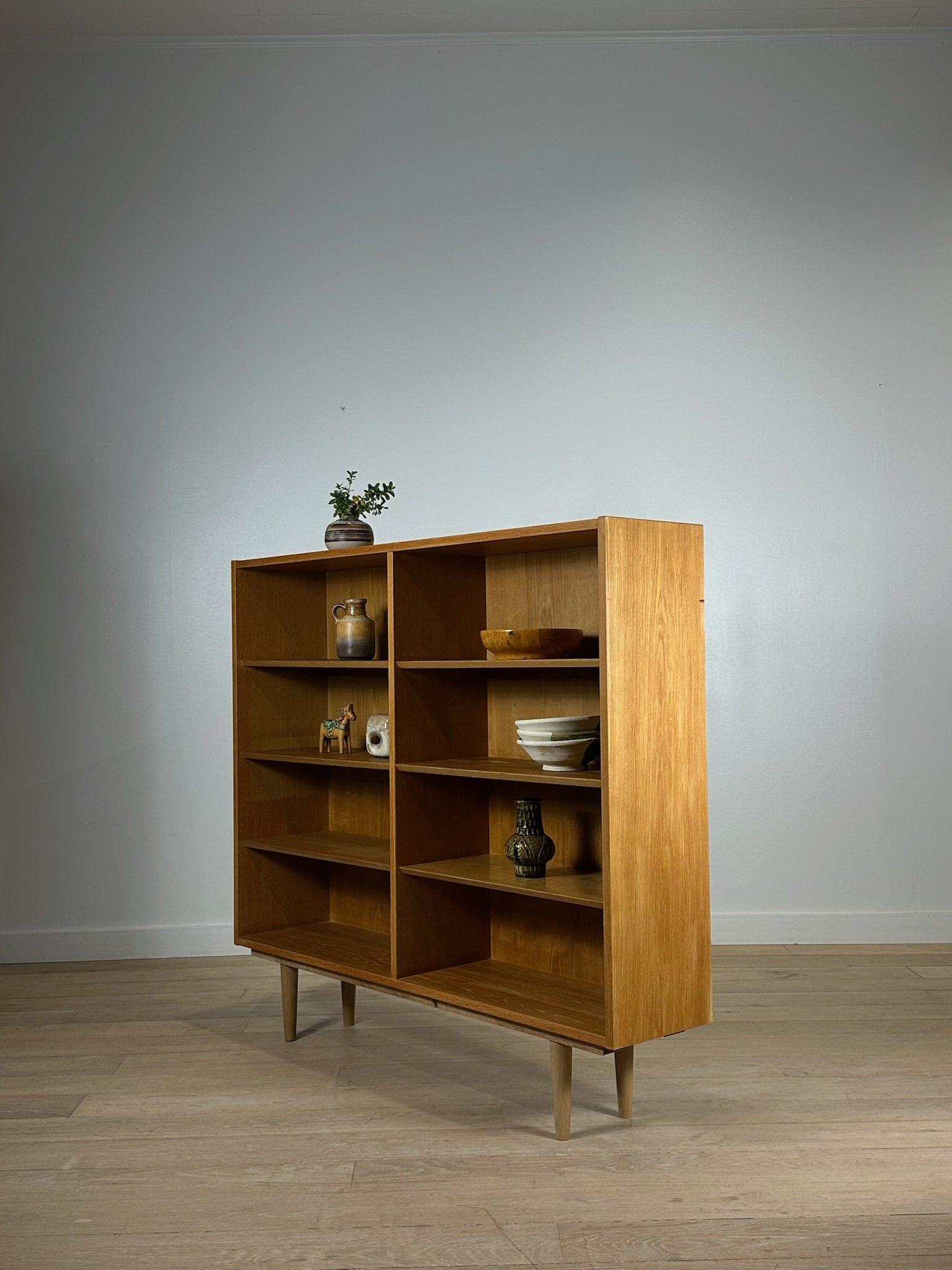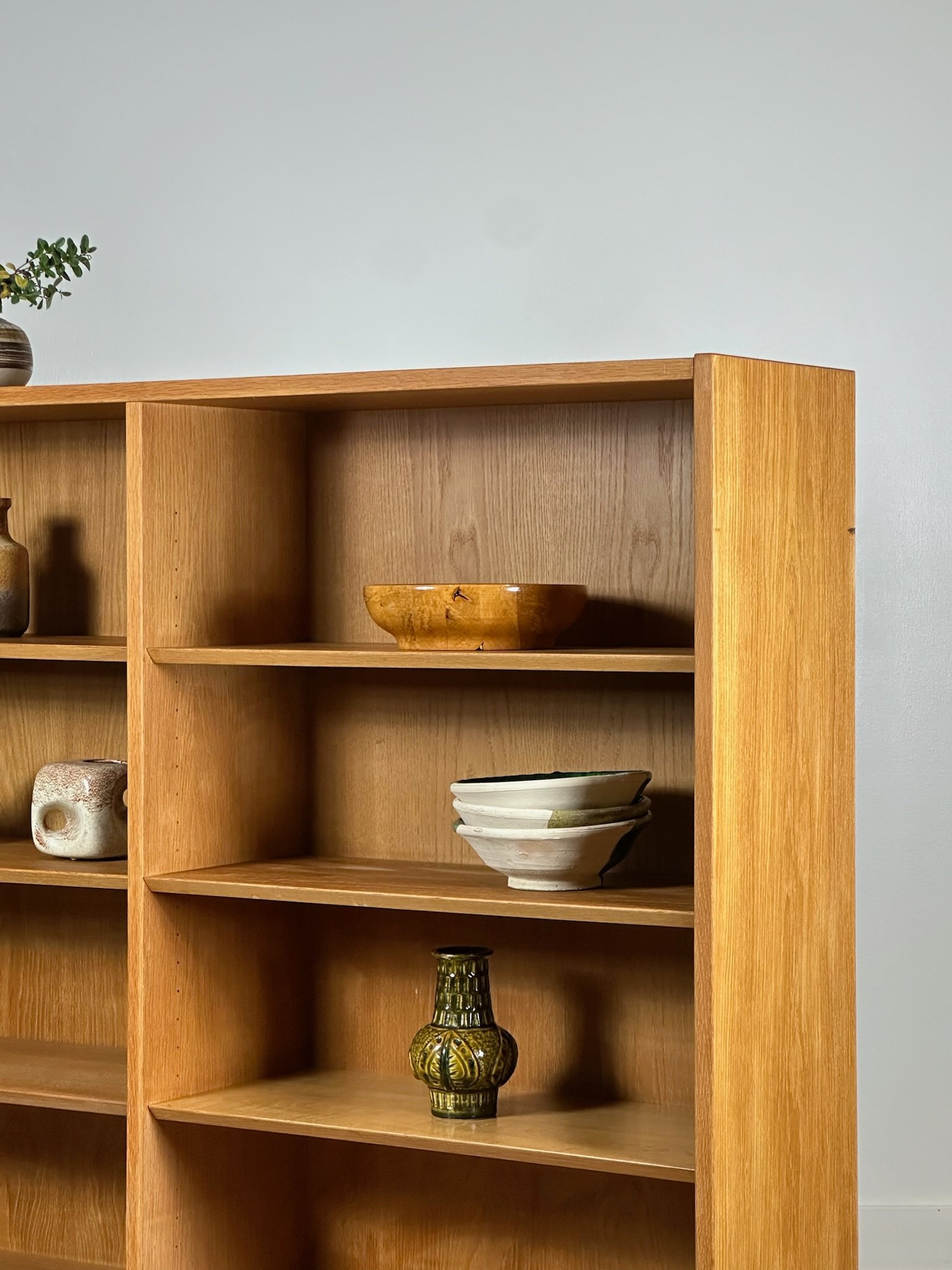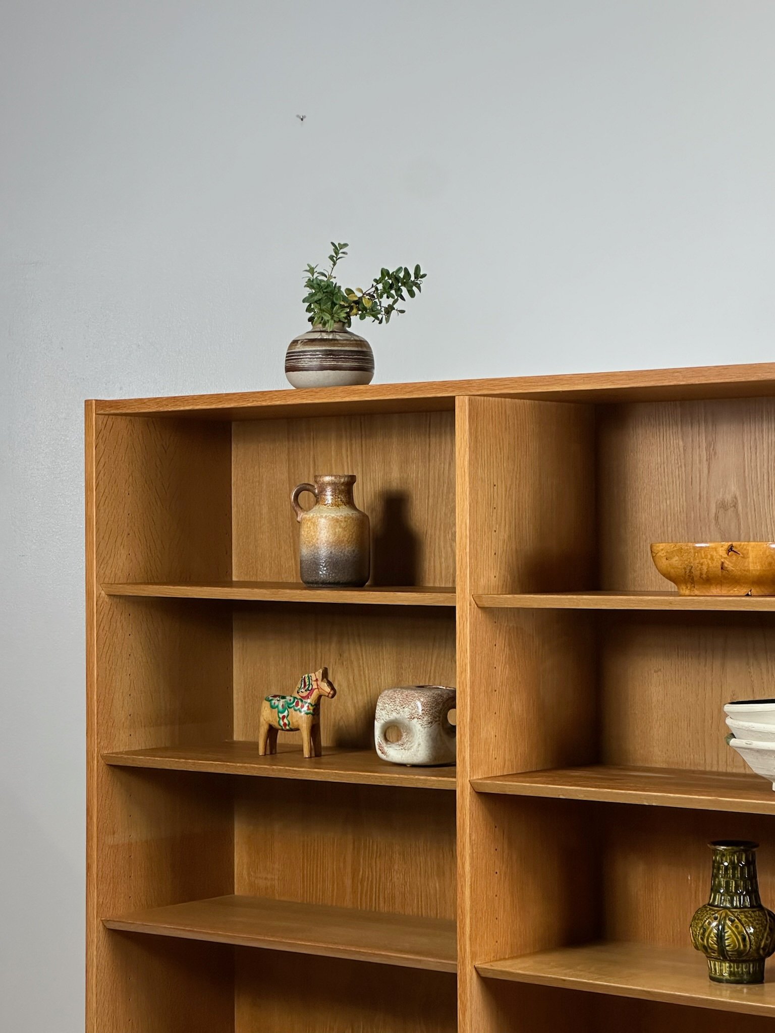 A larger and wider Danish bookcase designed by Poul Hundevad, featuring adjustable shelves. The cabinet is in excellent condition.